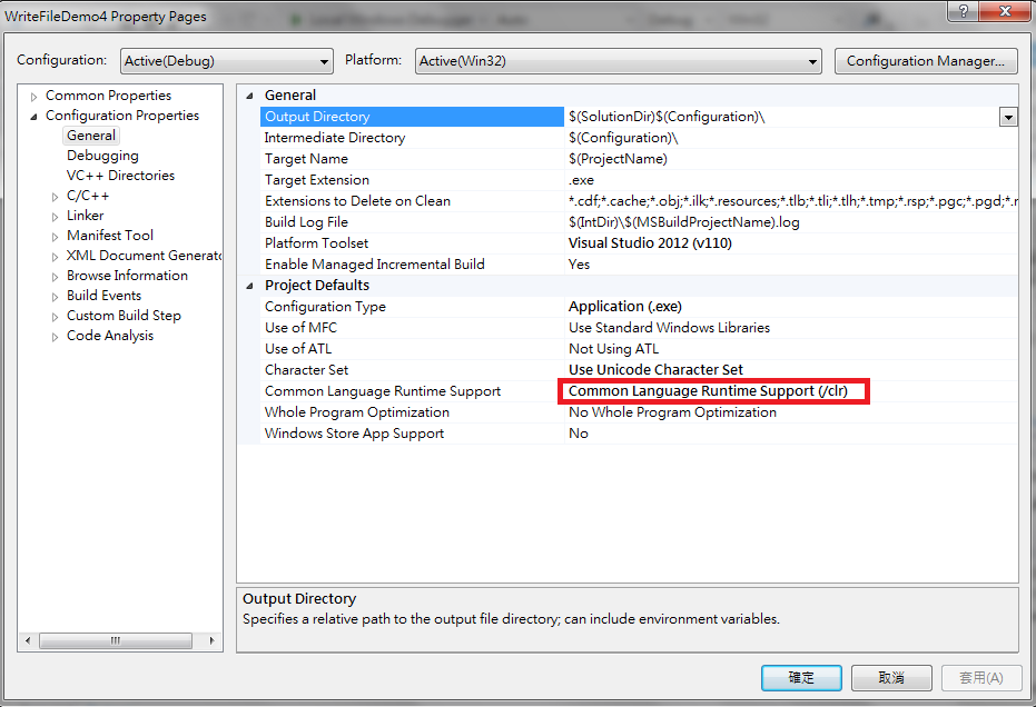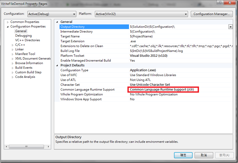 Common Language Runtime Support預設值為No Common Language Runtime Support