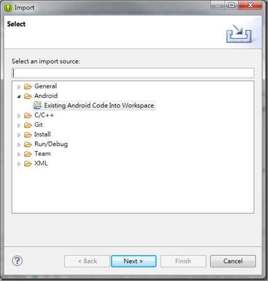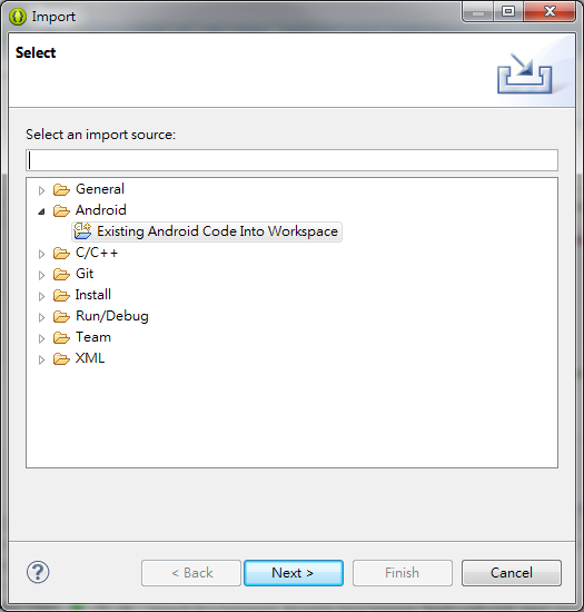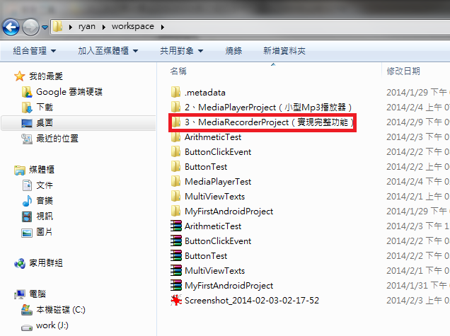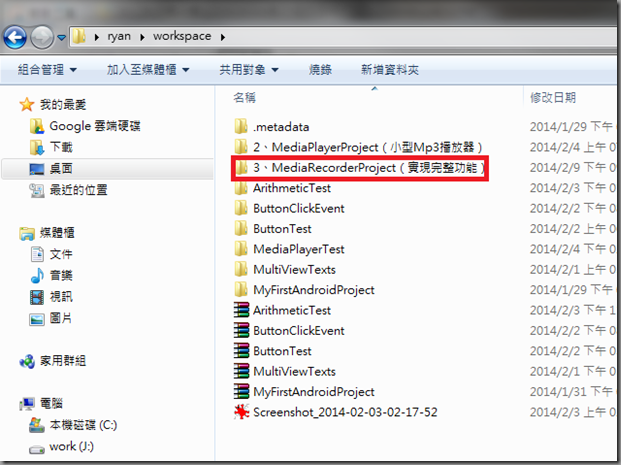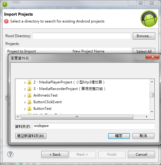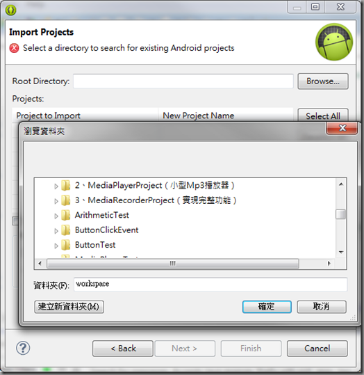 選取剛才複製貼上的資料夾 C:\Users\ryan\workspace