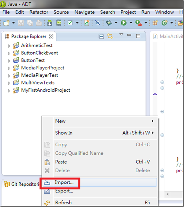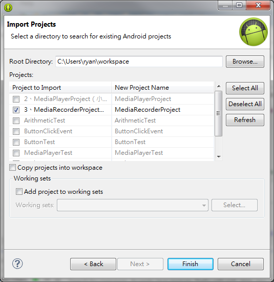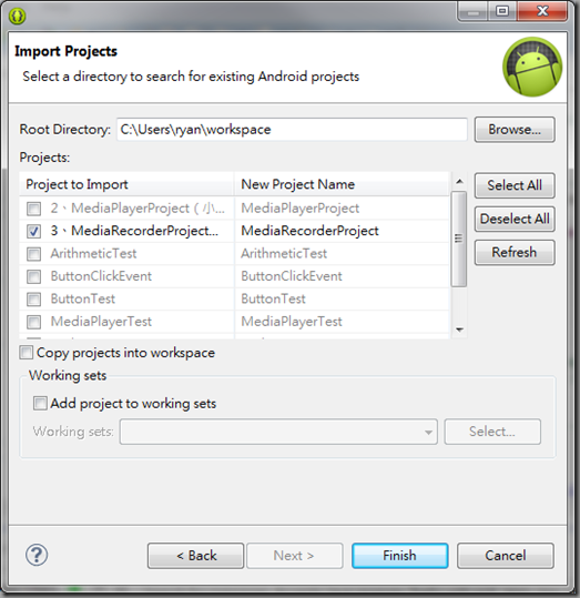 就會看到剛才貼上的專案會自動勾選, 已經載入workspace的專案則會反白顯示