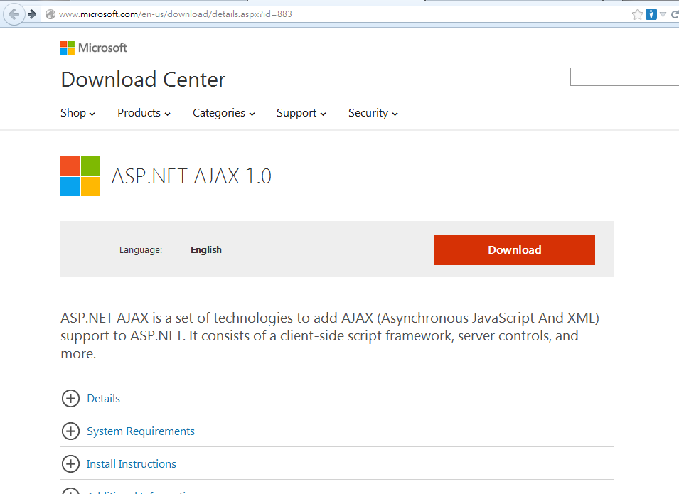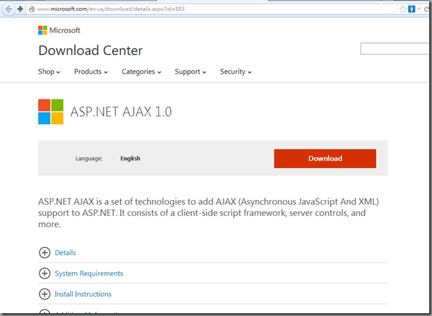 Microsoft Download Center找 ASP.NET AJAX 1.0安裝檔