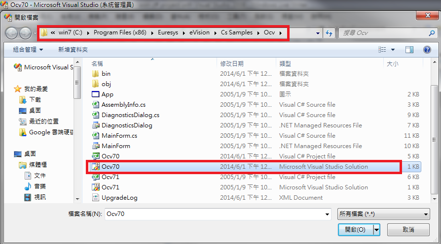 Step 2. Choose Ocv directory and then open Ocv70.sln, some upgrade processes will be needed