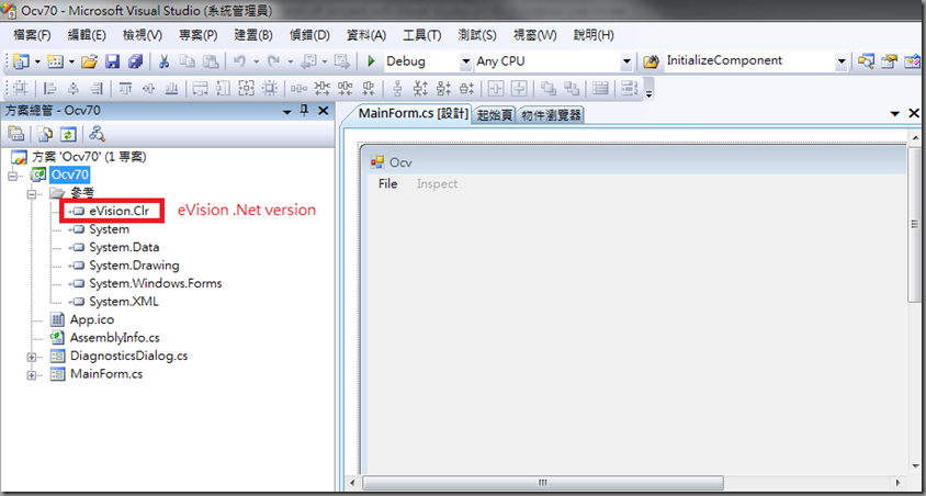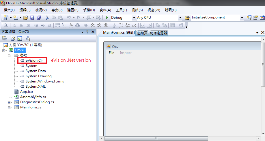 Step 3. Verify the reference component (eVision.Clr) is loaded successfully as shown below