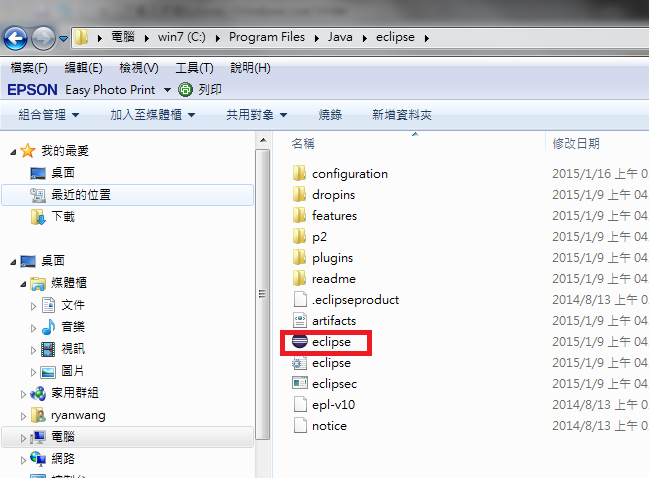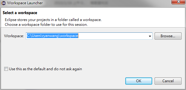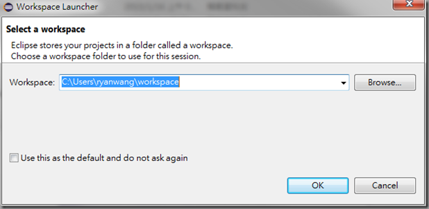 程式會去抓目前使用者名稱貼出預設路徑 C:\Users\ryanwang\workspace