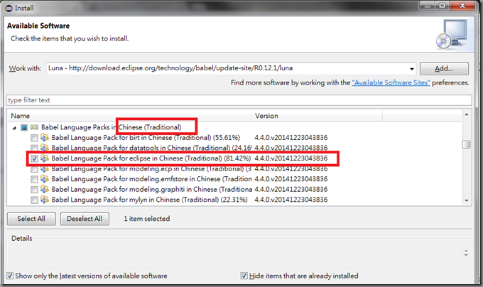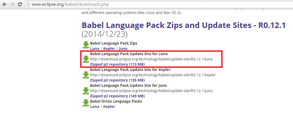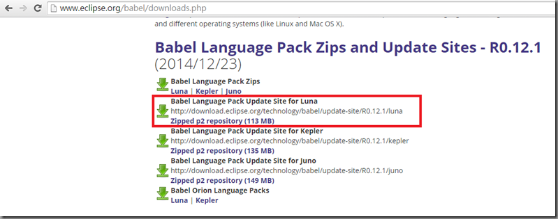 先進入http://babel.eclipse.org/babel/後,點擊 Download a language pack