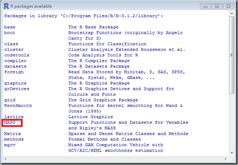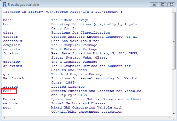 輸入指令 library(), 可以查詢目前R提供的套件