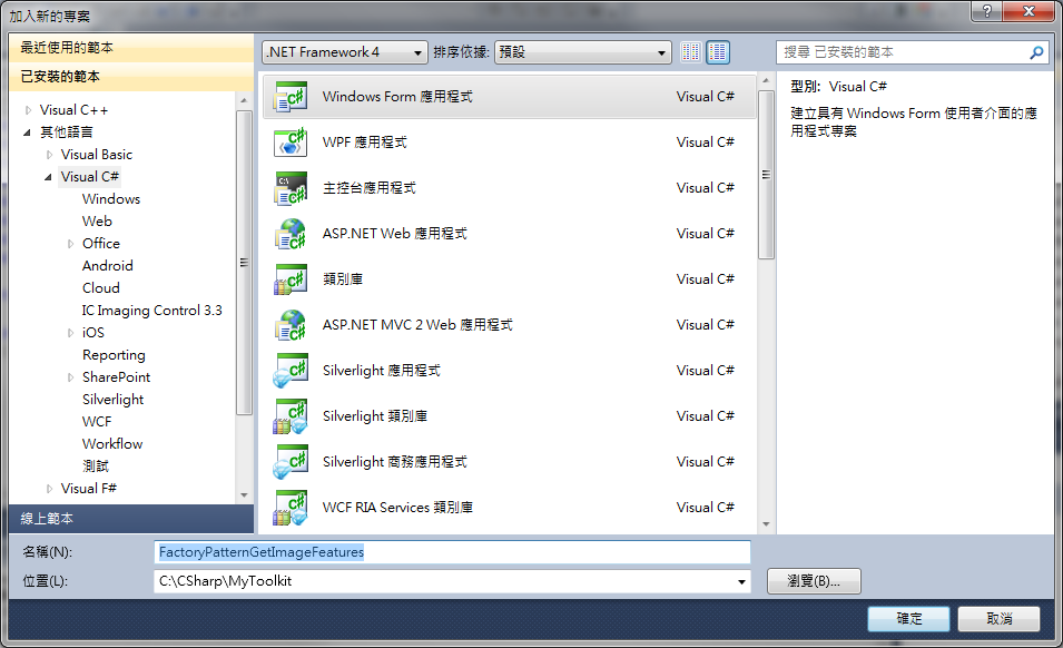 新增一個windows form專案