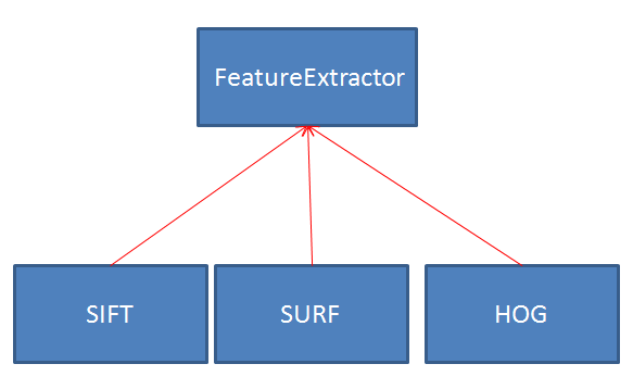 最後定義一個ImageFeature內含一個靜態函式供外部呼叫, 根據所傳入的方法字串決定動態回傳的特定方法實體