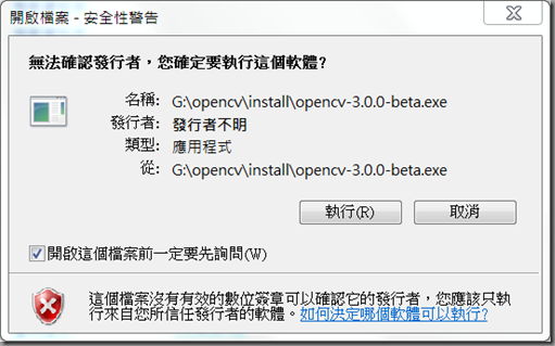 - 之前筆電安裝OpenCV 2.4.8 花了5分多鐘解壓縮, 這次只花了1~2分鐘,