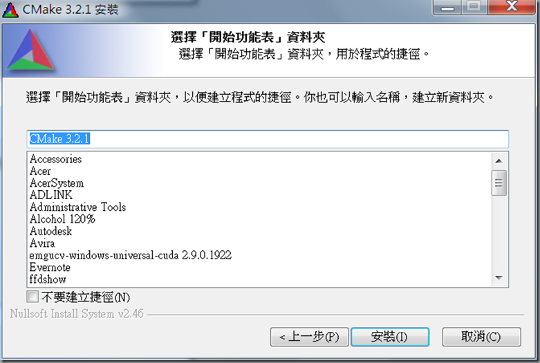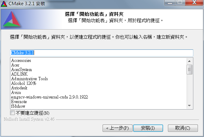 - cmake-3.2.1-win32-x86.exe Windows (Win32 Installer)