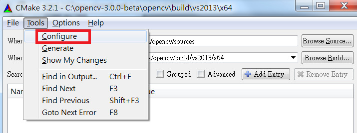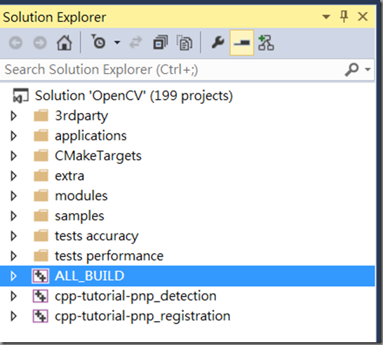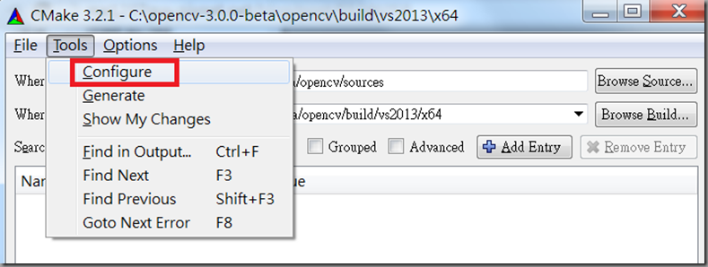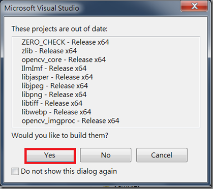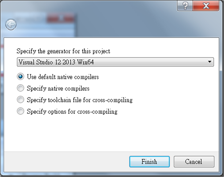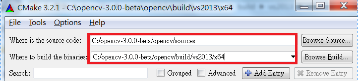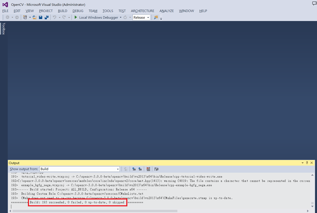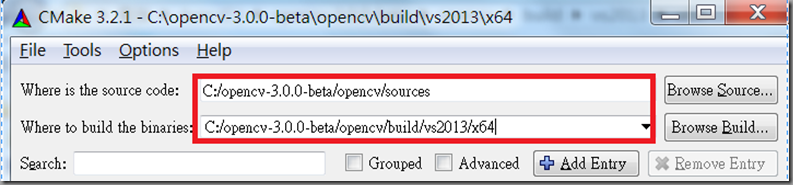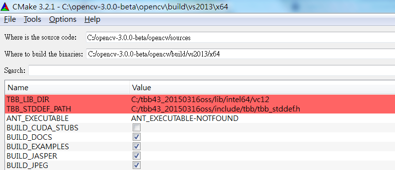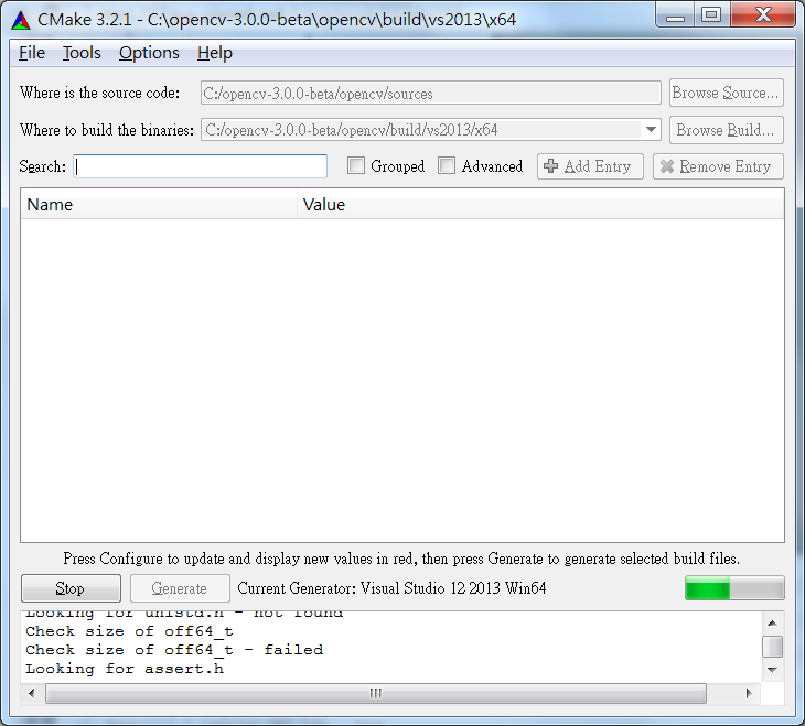 如果沒有甚麼意外, Visual Studio 2013專案應該會輸出到 C:\opencv-3.0.0-beta\opencv\build\vs2013\x64