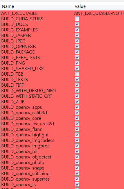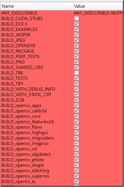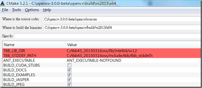 設定完上述後再次按下configure, 便開始更新環境設定, 結束後手動修正出現紅色字的欄位