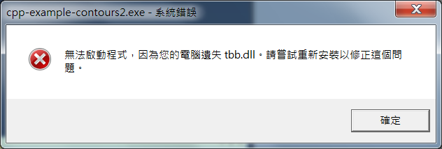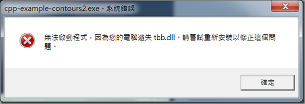 如果你發現下列錯誤訊息:tbb.dll找不到