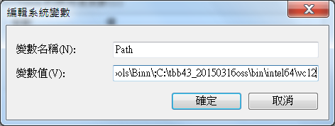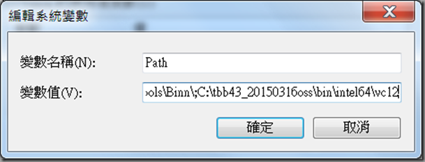 加入C:\tbb43_20150316oss\bin\intel64\vc12