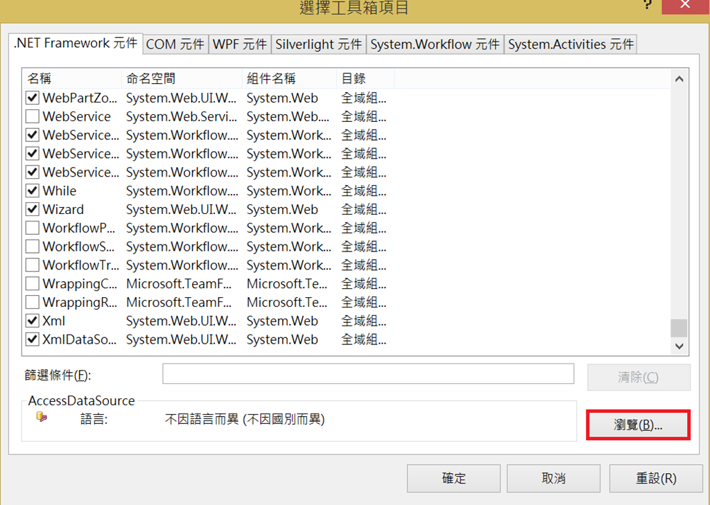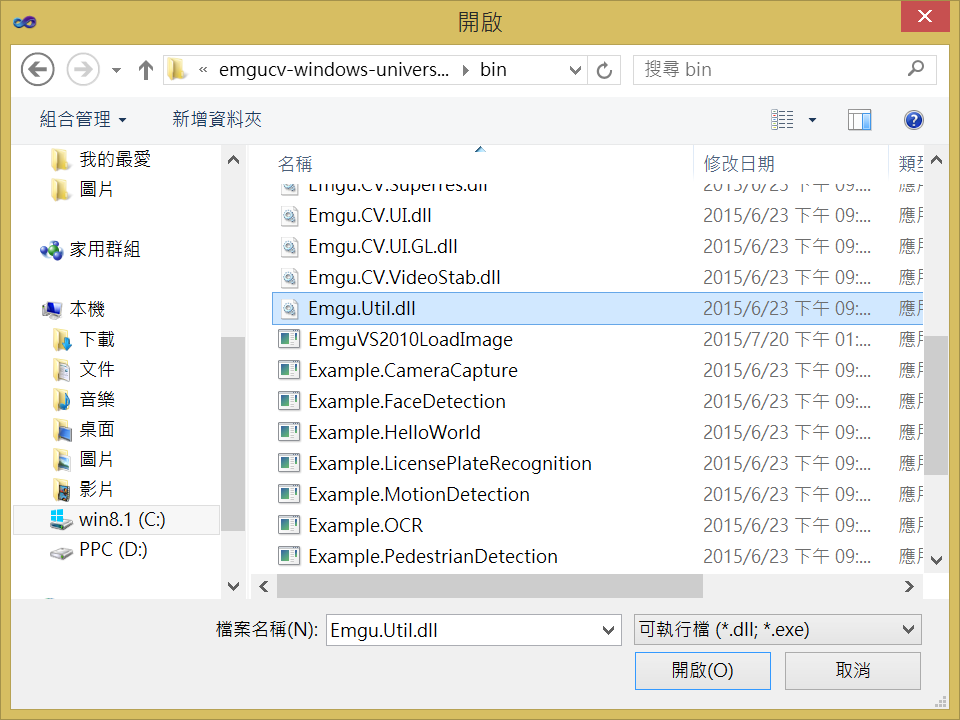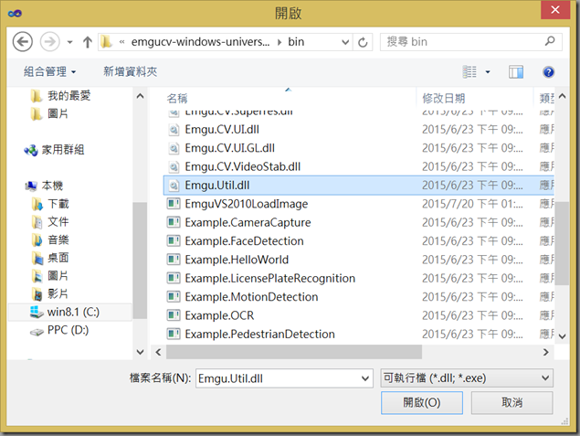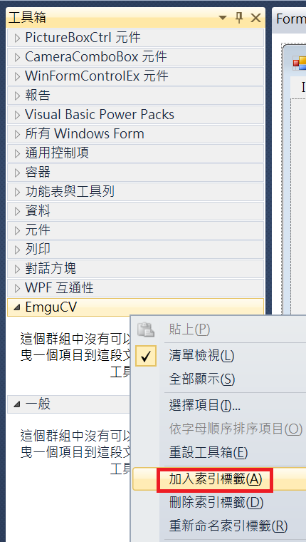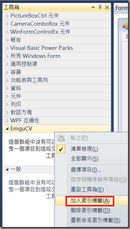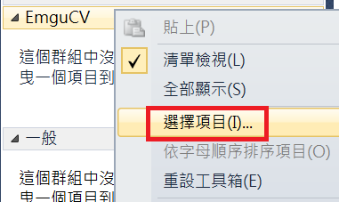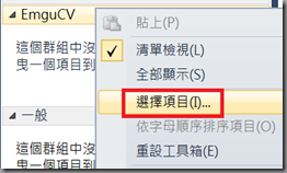 開啟後, 可以在EmguCV看到新增的四個.NET framework元件