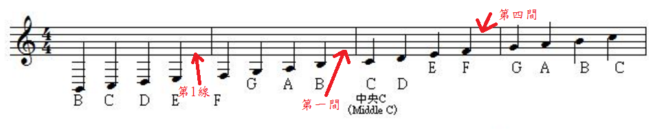 而這些線及間由下而上命名的,最下面的是第1線,最上面的是第5線;