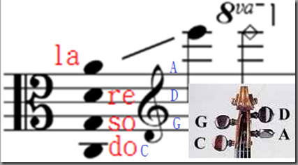 中提琴的音剛好比小提琴低5度,因此它們有三根弦相同:G、D和A。