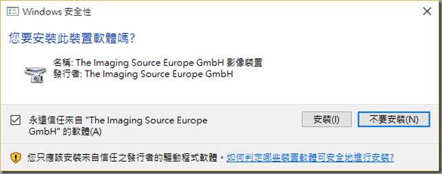 安裝TIS USB相機驅動程式