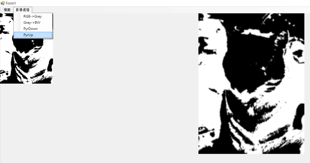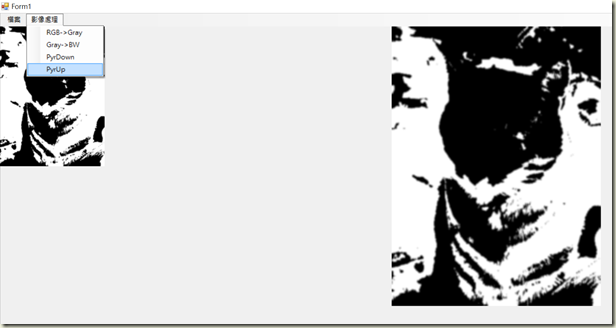 34: { 35: CvInvoke.PyrUp(m_ip.SourceImage, m_ip.TargetImage); 36: } 37: }客戶端程式