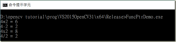 宣告一個PtrFun資料型態,存放四個函式指標(即為函式名稱)