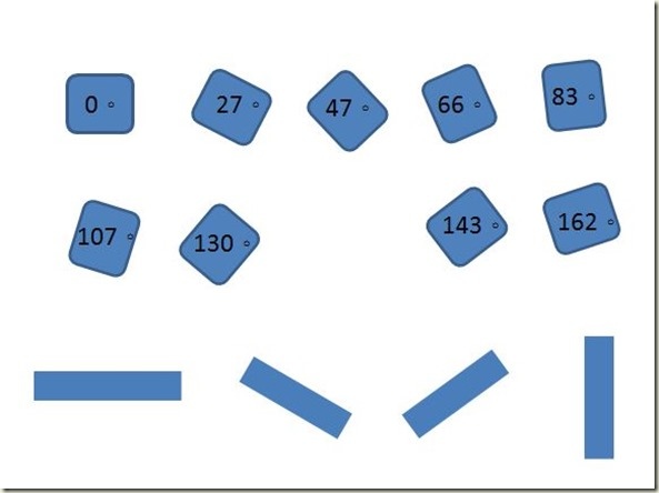 利用PowerPoint製造測試圖片,黑色數字為PPT旋轉角度
