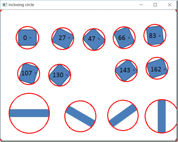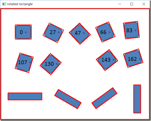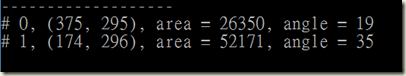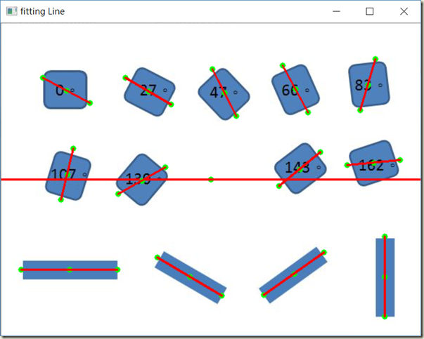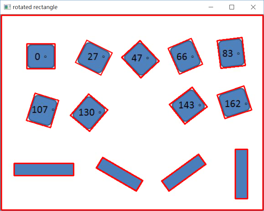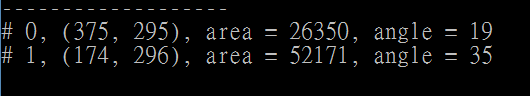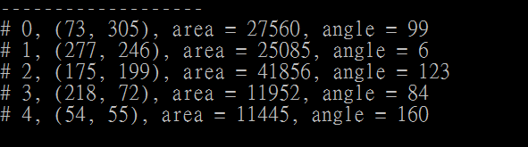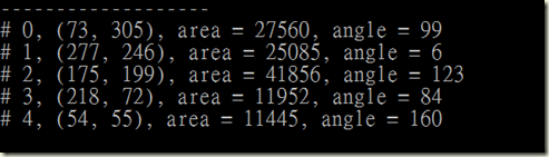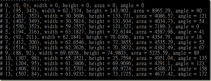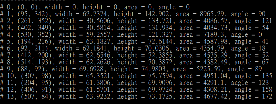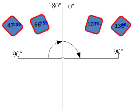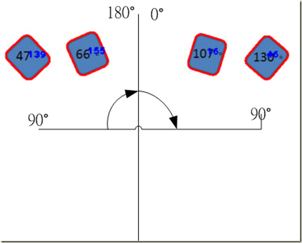 紅色: OpenCV計算出的角度,可以從第三列開始看起,