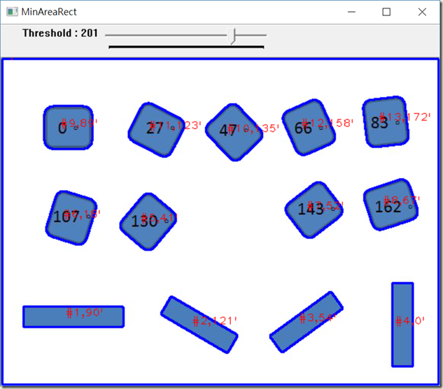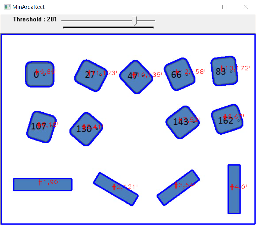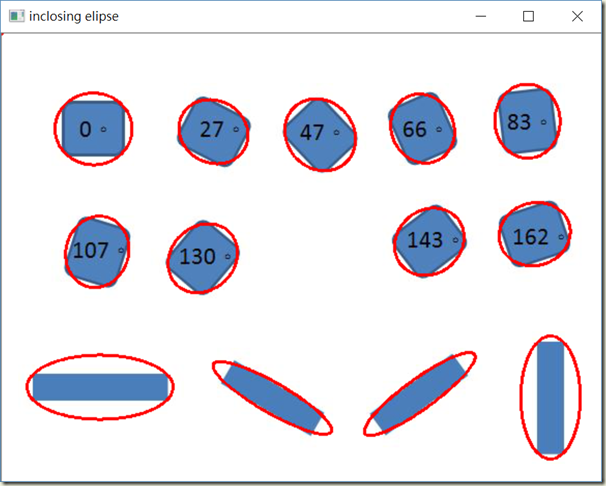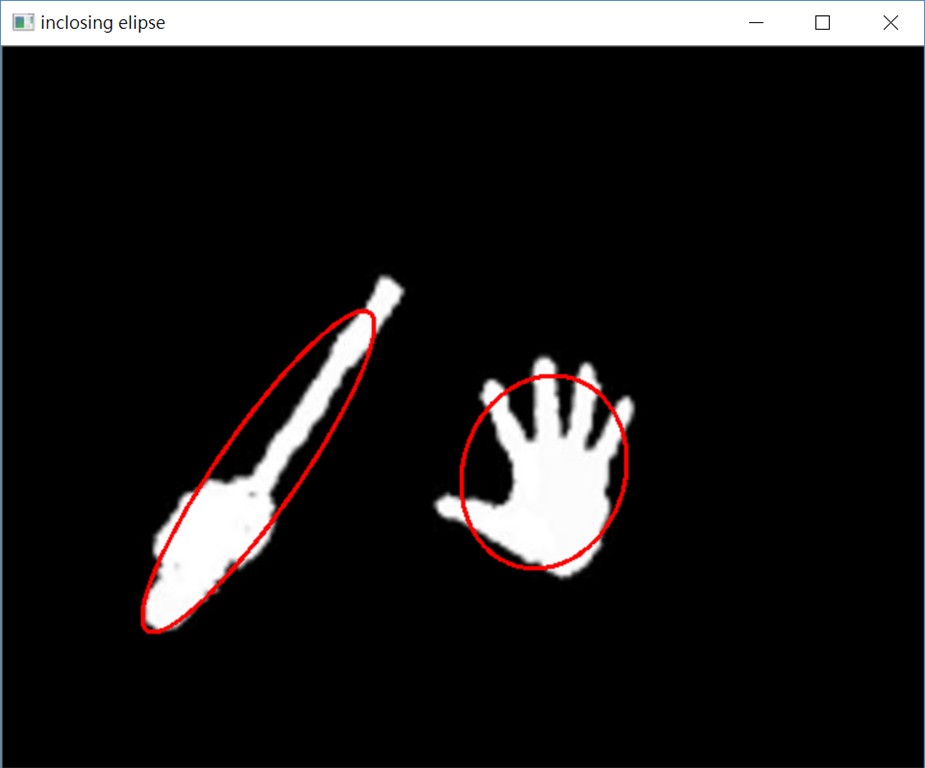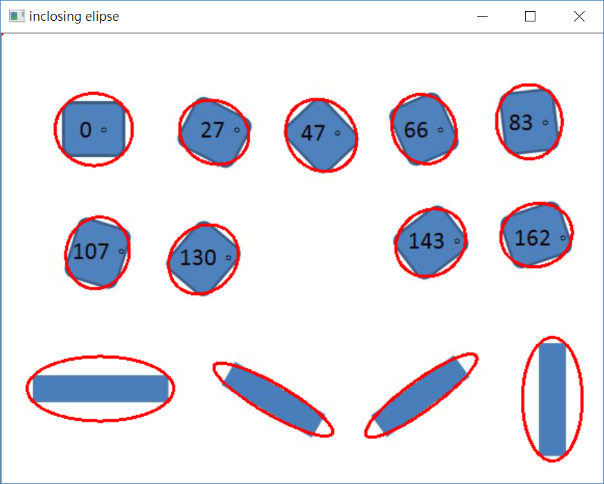 取橢圓的長短軸當面積,不過隨物體旋轉角度更動, 最小包覆面積也會改變