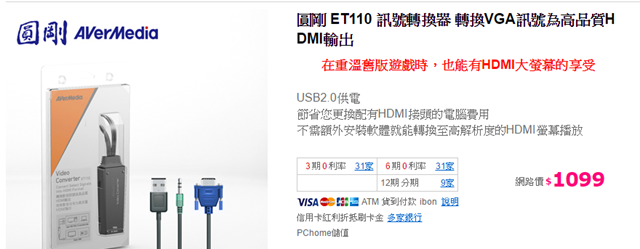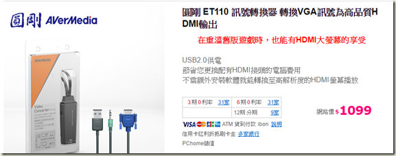 圓剛 ET110 訊號轉換器 轉換VGA訊號為高品質HDMI輸出