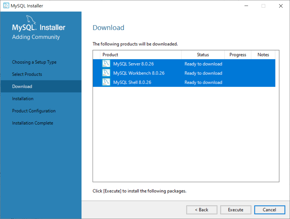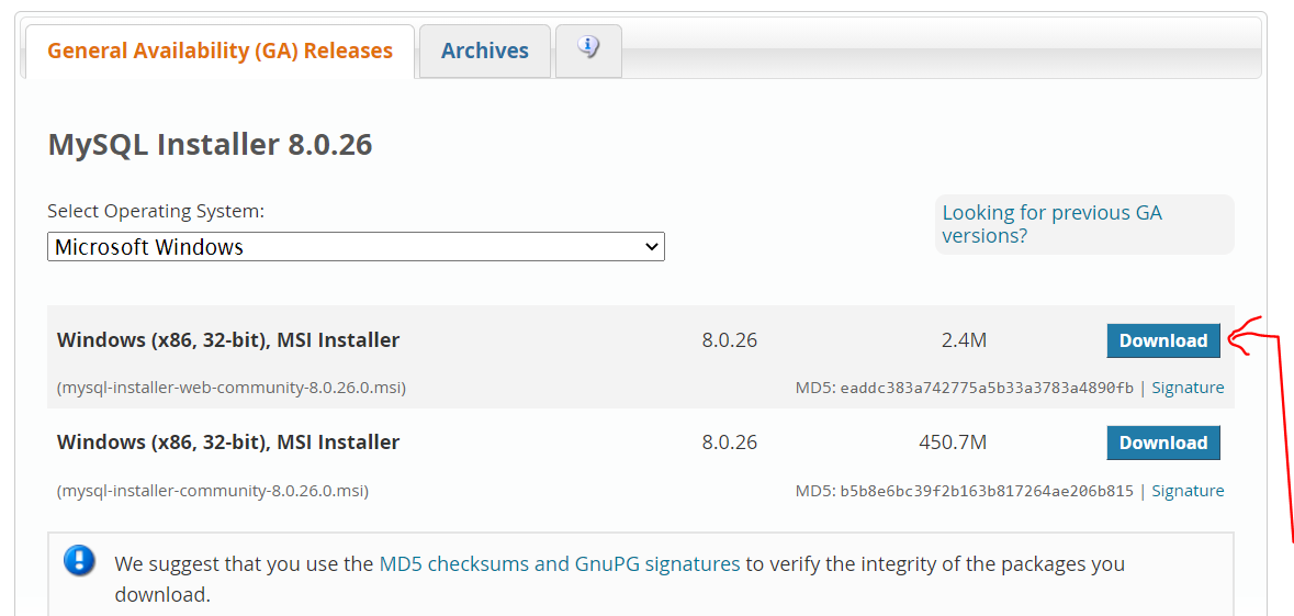 1. MySQL Server => MySQL Server 8.0 => MySQL Server 8.0.26 X64