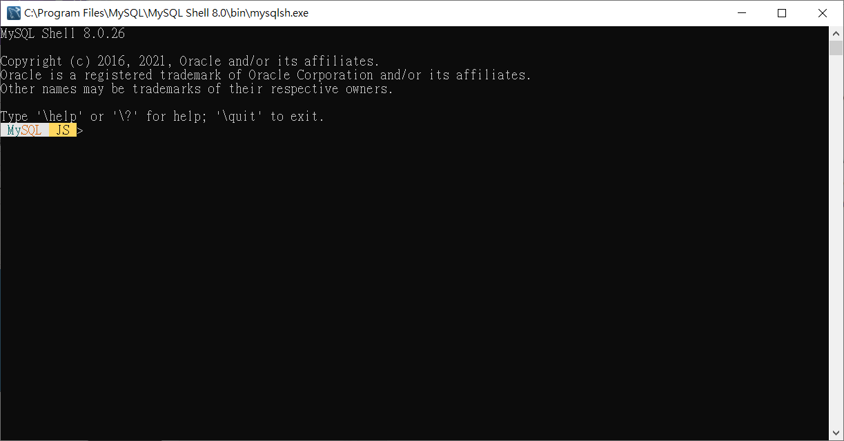 3. Applications => MySQL Shell => MySQL Shell 8.0 => MySQL Shell 8.0.26 X64