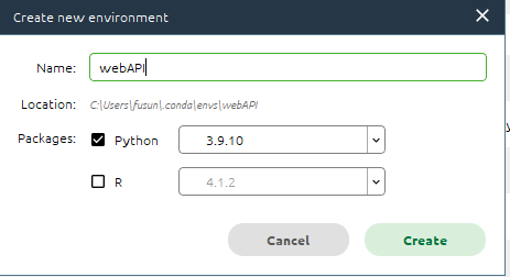 Create a new environment for the project in Anaconda
