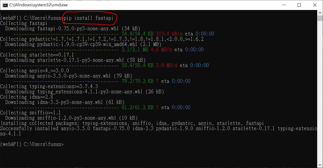 2. pip install fastapi