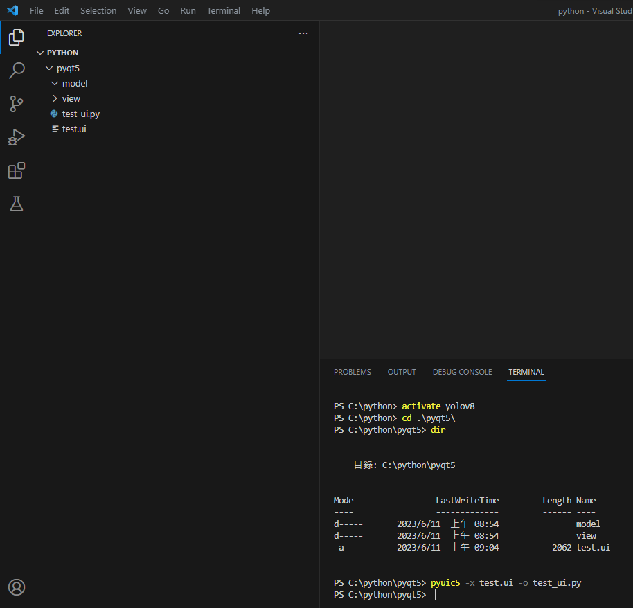 上面的指令會將原本qt designer設計的ui轉成python程式碼test_ui.py