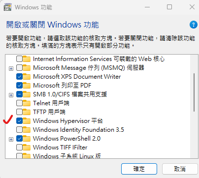透過上面連結設定後,我的筆電(Win11家用版) 才會出現Hyper-V選項