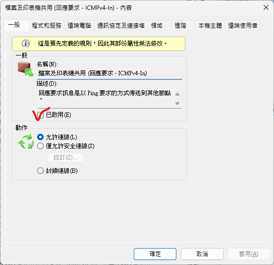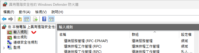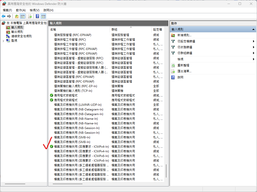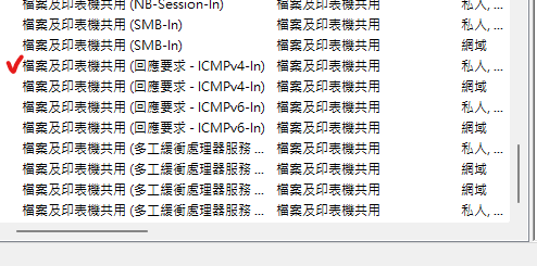 輸入規則找尋關鍵字: 檔案及印表機共用(回應要求)