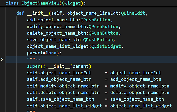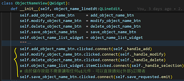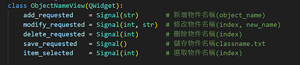 4.1 以add_object_name slot為例,該輸入引數符合view add_requested訊號格式 Signal(str)