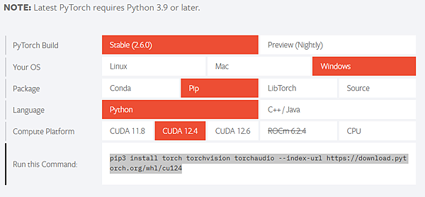 > pip3 install torch torchvision torchaudio --index-url https://download.pytorch.org/whl/cu124